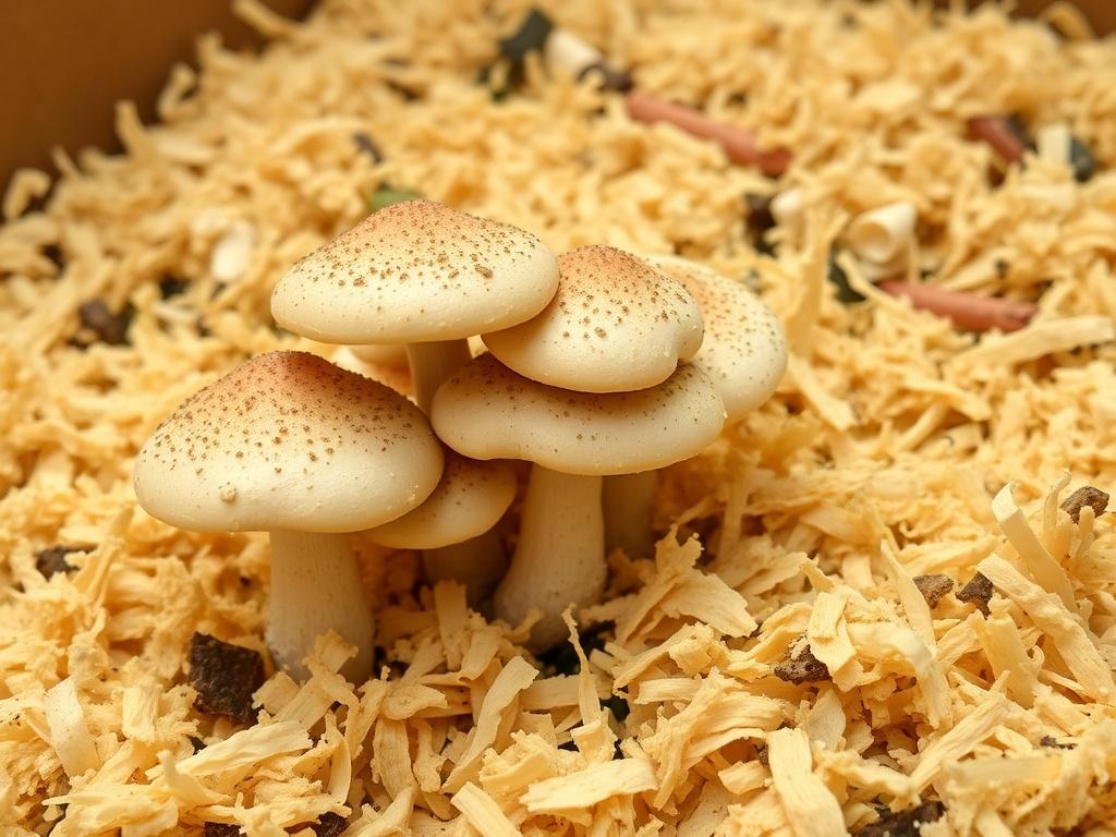 El serrín de madera dura es el sustrato preferido porque imita el hábitat natural del hongo: residuos lignocelulósicos de árboles caducifolios. Proporciona una estructura física adecuada, retiene humedad de forma homogénea y, bien formulado, ofrece la relación carbono-nitrógeno necesaria para el micelio. Además, es fácil de manipular y se adapta bien a bolsas y bloques térmicos usados por pequeños productores.