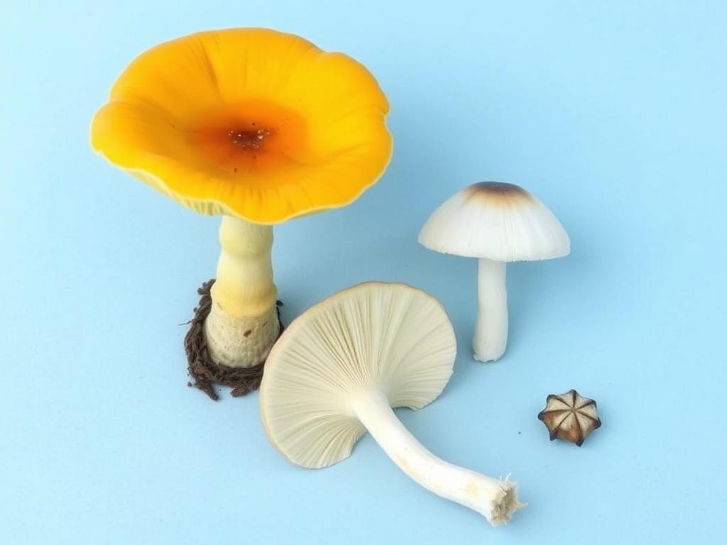 El hongo conocido como “jack-o’-lantern” (Omphalotus) tiene láminas decurrentes y crece en grupos sobre madera; su color naranja brillante lo distingue claramente en muchos casos. Sin embargo, en condiciones de luz baja o cuando los ejemplares envejecen, la confusión puede surgir si no se presta atención al color y al sustrato.