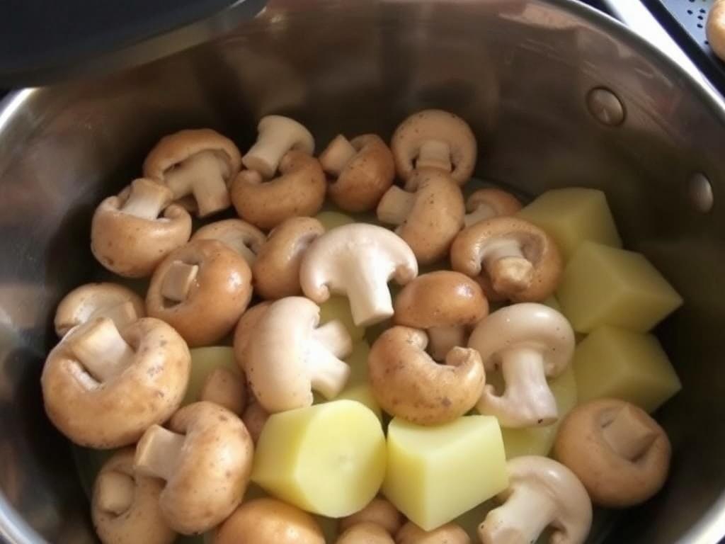Al cortar, adapta el tamaño al tipo de seta y al tiempo de cocción de la patata. Rodajas gruesas para portobello, láminas finas para champiñones blancos y tiras para setas ostra. Cortes uniformes aseguran cocción pareja y mejor presentación en la bandeja.